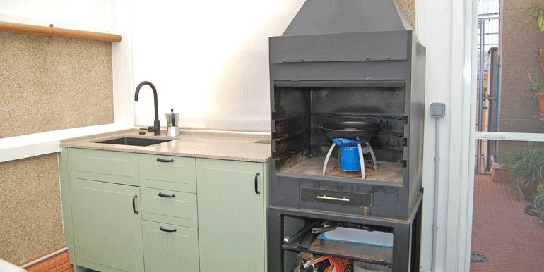 Planta alta: Dormitorio, y baño completo. Terraza de 45,67 m² útiles, en la que se ha habilitado una estancia-merendero con barbacoa y fregadero.