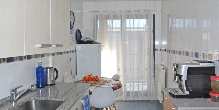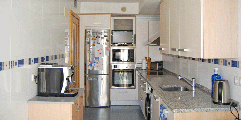 Cocina con amueblamiento completo, altos y bajos. Encimera de granito. Electrodomésticos incluidos. Frigorífico combi. Vitrocerámica y campana extractora. Horno y microondas encastrados. Lavavajillas panelado y lavadora.